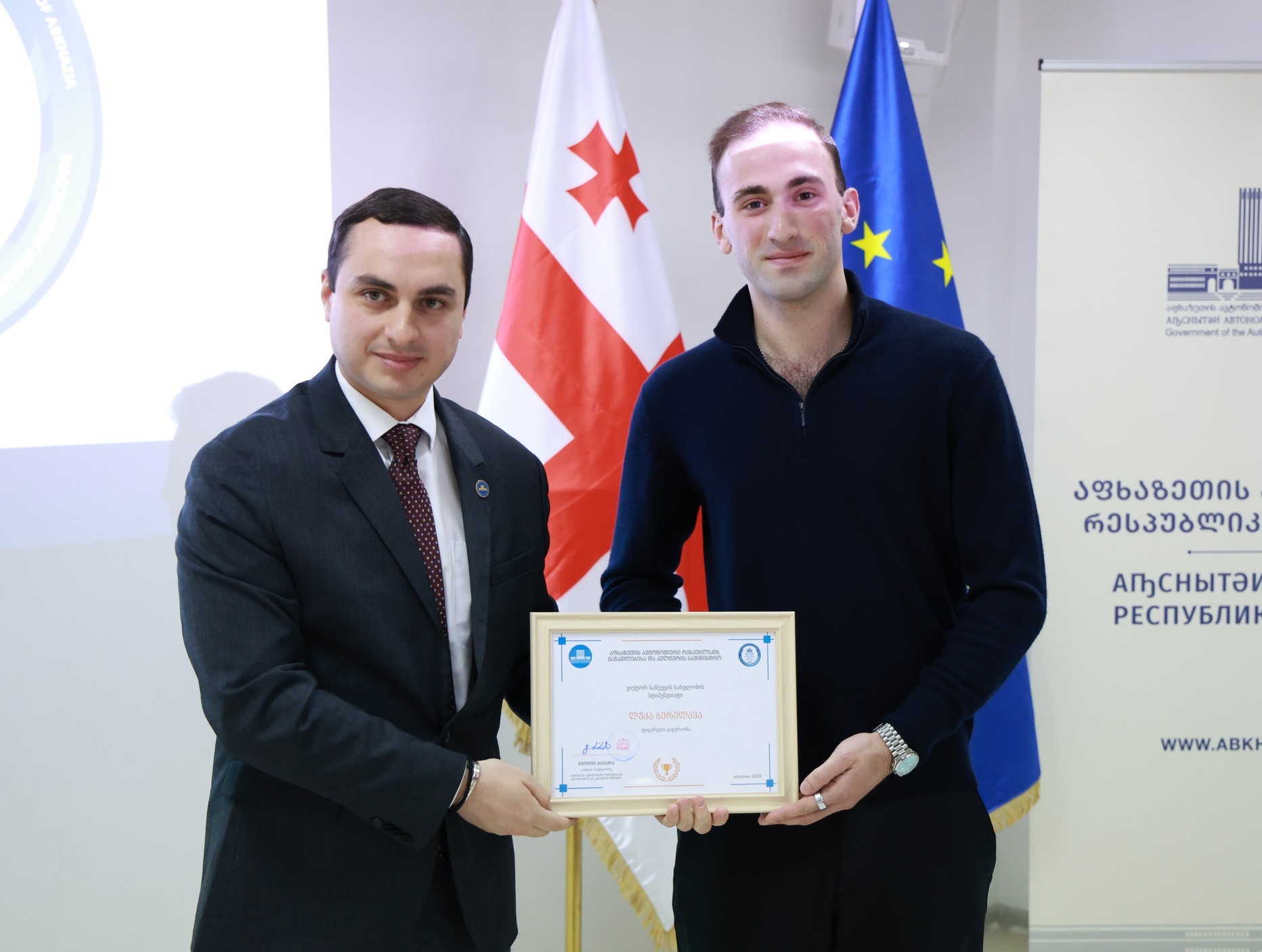 აფხაზეთის ავტონომიური რესპუბლიკის მთავრობის თავმჯდომარემ გიორგი ჯინჭარაძემ აფხაზეთიდან დევნილი, სპორტის სხვადასხვა სახეობაში წარმატებული სპორტსმენები ვიქტორ სანეევისა და ვიტალი დარასელიას სახელობითი სტიპენდიებით დააჯილდოვა.
