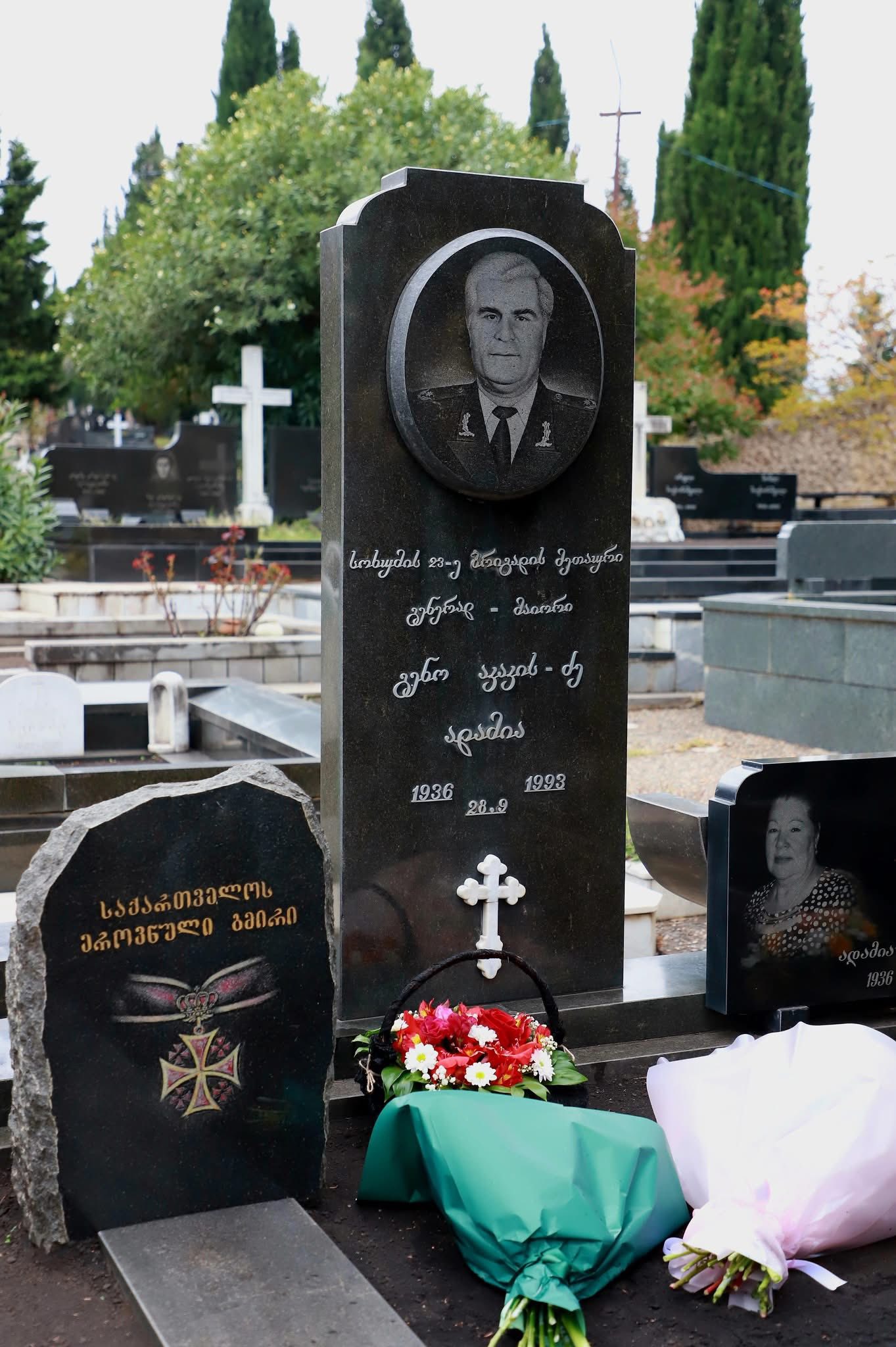 გენერალ-მაიორის საფლავზე, აფხაზეთის მთავრობის თავმჯდომარის მოადგილე ანზორ მარგიანი, აფხაზეთის ჯანმრთელობისა და სოციალური დაცვის მინისტრი ბესიკ კუსიდი, გენო ადამიას ოჯახის წევრები და ვეტერანები იმყოფებოდნენ.